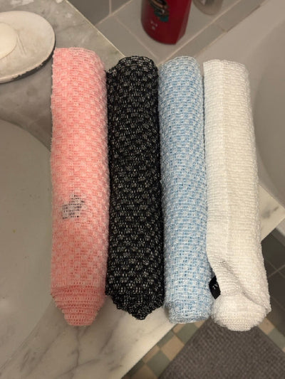 Nous combinons innovation textile et matériaux avancés pour offrir une exfoliation efficace, sans micro-agression, sans prolifération bactérienne, et sans compromis sur le confort.